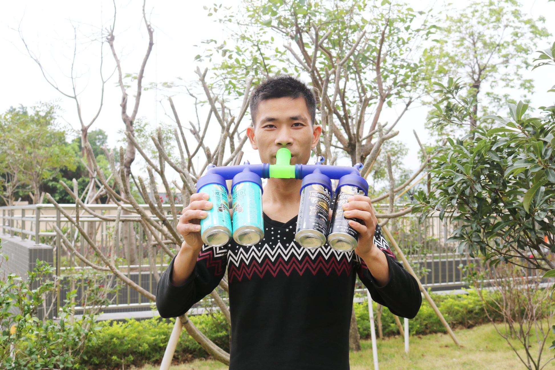 double beer can snorkels , drink speed .